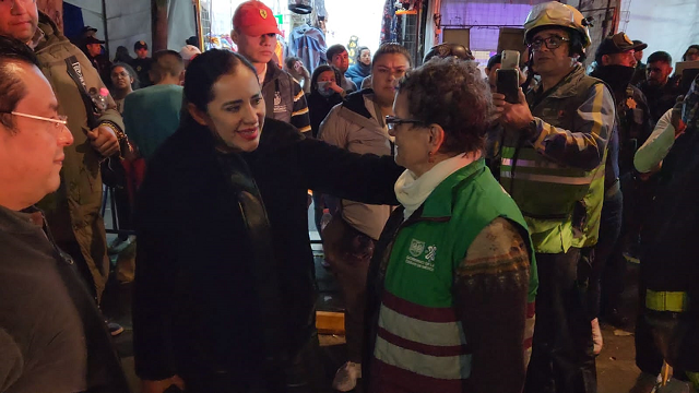 La Alcaldesa de Cuauhtémoc, Sandra Cuevas acudió al lugar donde se incendió una bodega de tenis en el corazón de Tepito, para coordinar acciones de apoyo a comerciantes, vecinos y visitantes.